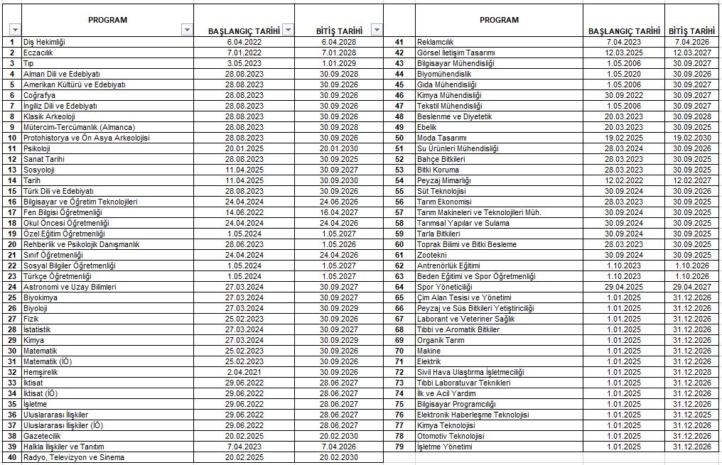 Akredite Program Listesi